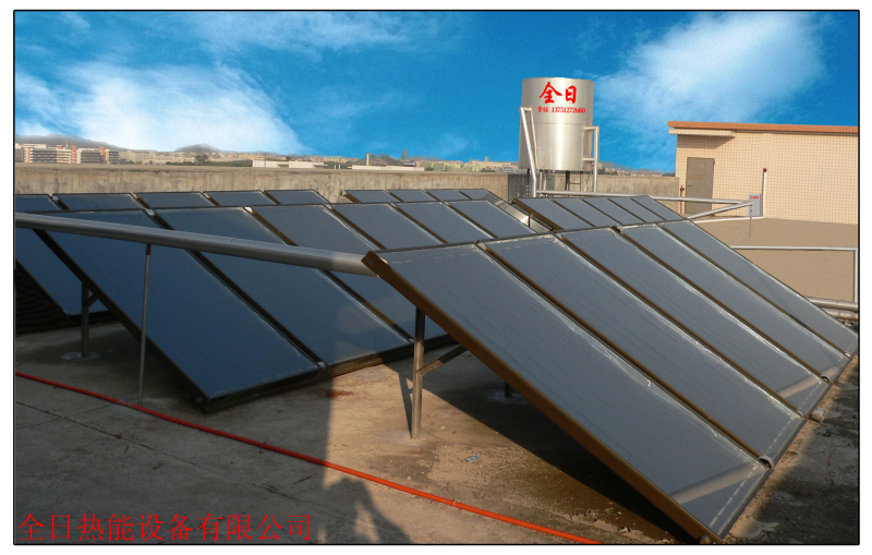 2:阳极氧化平板太阳能热水工程系统 1:太阳能热水工程原理 太阳能热水器是将太阳光照转化为热能,将水从低温加热到高温,以满足人们在生活、生产中的热水使用装置。太阳能热 水器由集热器、储水箱及相关附件组成,把太阳能转换成热能主要依靠集热器。集热器分平板式太阳热和真空管式太阳热两 种。其原理是集热器受阳光射面加温,利用热水上浮、冷水下沉的原理,使水产生微循环而达到所热水。 性能特点 * 太阳能水质洁净,清洁卫生,无污染,具排污净化功能。 * -次投资,长远受益,节省电费,燃料费,1-2年即可收回投资,受益时间长达15年。 * 太阳能集热器传热性能好,表面处理工艺高,吸热能力强。 * 系统保温性能好,蓄热能量大,热量损失少。 * 保温水箱有蓄水功能,可满足大量人员集中用热水,亦可做停水时应急水源之用。 * 系统安全可靠,全电脑自动控制,静态运动,无噪音,无污染,环保节能。 * 配套辅助加热方式,空气能,电能,各式工业余热,阴雨天可照常用热水。 * 保温水箱为双层304不锈钢,进口聚案脂整体发泡保温,保温层厚度大于50mm。 * 取热方式;自然循环或强制循环。 详细信息: 1、平板集热器设计标准 GB/T6424-2007《平板型太阳能集热器》 GB/T4271-2007《太阳集热器热性能实验方法》 GB/T19141-2003《家用太阳热水系统技术条件X》 欧盟EN12975 2、集热器技术说明 * 真空磁控溅射涂层,热吸收率290%+2,发射率s10%±2,是当前世界集热效率最高的太阳能吸热涂层 * 边框采用加厚型铝合金,保证产品使用寿命超过20年。同时设有专用防风连接件卡槽,确保了户外固定强度 侧/底保温均采用超细玻玻棉材料整体保热损系数更低,温性能更好 * 玻璃采用超白低铁布纹钢化玻璃,强度是普通玻璃的四倍,透光率达到91.5%以上。在保证集热效率的同时,充分考虑了集 热 器户外使用的安全 * 流道为TP2紫铜管,自动加压测试设备试验压力12Mpa,确保在系统中承压运行。 * 不锈钢支架或镀锌角钢。 |